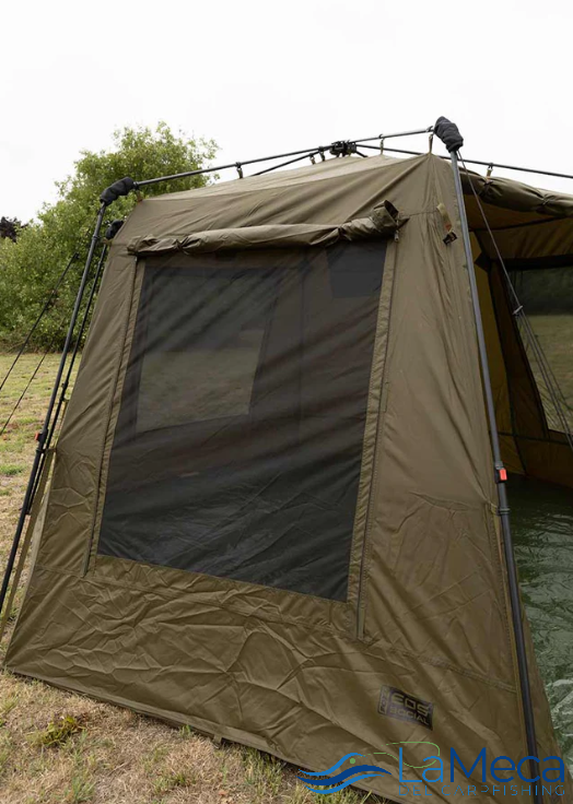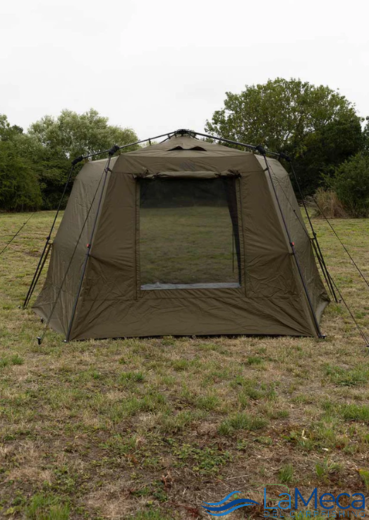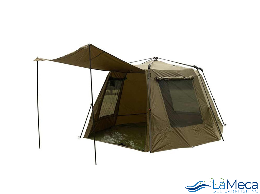 Refugio de la marca Fox modelo EOS Social Shelter XL en color caqui, especial para la pesca de carpfishing.