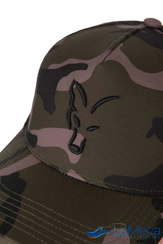 La Fox Gorra Trucker Camo combina el estilo clásico trucker con un diseño funcional pensado para los amantes de la pesca y la vida al aire libre. Su patrón de camuflaje Fox aporta un look moderno y discreto, mientras que los paneles de malla negra garantizan un flujo de aire constante, manteniéndote fresco incluso en los días más calurosos.