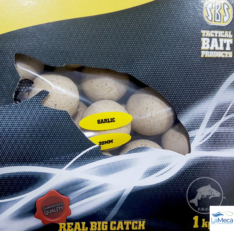 Bolsa boilies Garlic de 20 mm de diámetro con dip de regalo de la marca SBS.