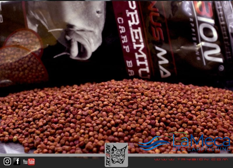 Micro pellets de la marca Trybion sabor Cyprinus de 3.5 milímetros en color rojo aroma a cangrejo.