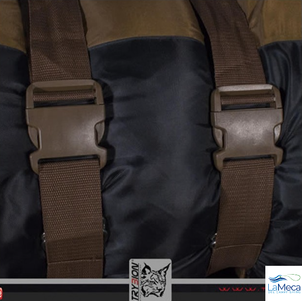 Saco de dormir de la marca Trybion, de 5 estaciones modelo Thermal con sistema de calefacción incorporado, en color marrón, especial para las bajas temperaturas en tus sesiones de carfishing.