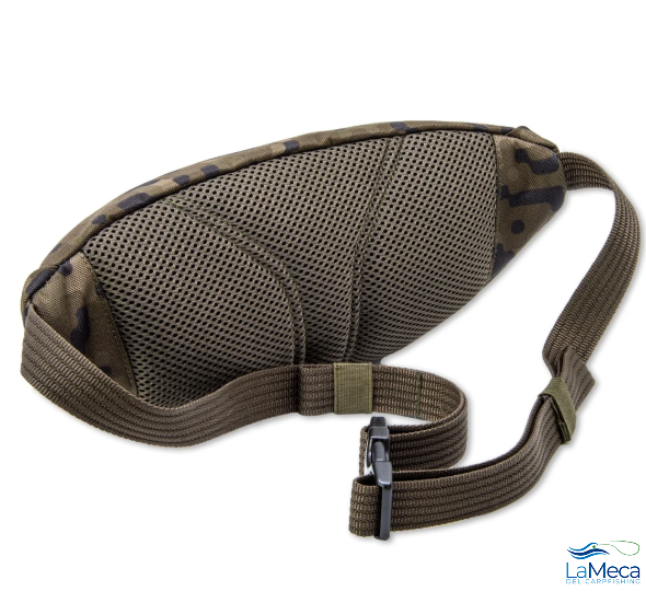 Todo se complementa con una correa ajustable que permite llevar la bolsa de dos maneras – en la cintura o cruzada sobre el hombro.