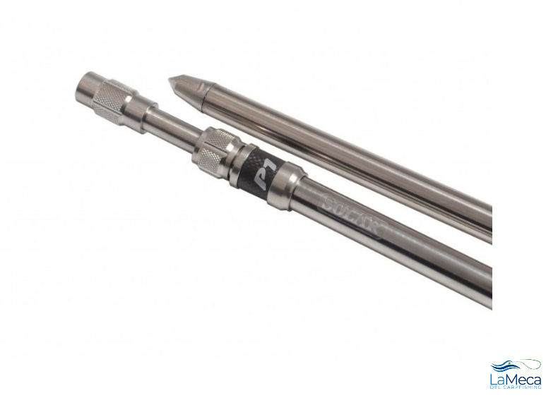 La altura de la estaca Solar P1 Travel-Lite se ajusta mediante el sistema "5 Spoke Diamond Grip Collar", que incorpora una rosca cónica para una fijación segura.