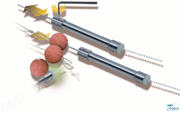 Además de ser muy visible entre el resto de tu equipo, o incluso durante las habituales búsquedas en la oscuridad, esta aguja ofrece la posibilidad de insertar tapones para boilies en la parte trasera para sellar instantáneamente tu equipo recién preparado.