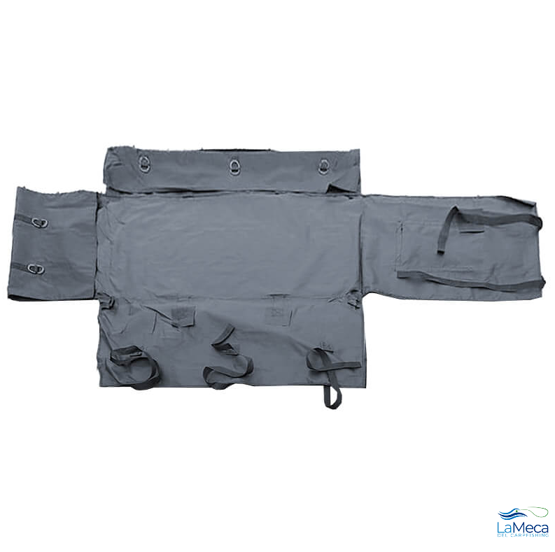 Presenta un tejido de PVC ligero con aspecto de carbono verde (1100 decitex) con costuras de 0,9 mm y termoselladas, lo que garantiza una unión aún más resistente que una unión pegada.
