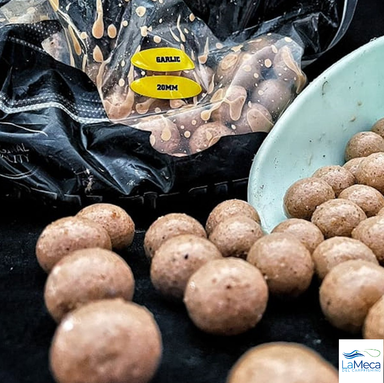 El sabor Garlic (Ajo) es particularmente potente, ideal para atraer carpas en condiciones variables y aguas con presión de pesca.
