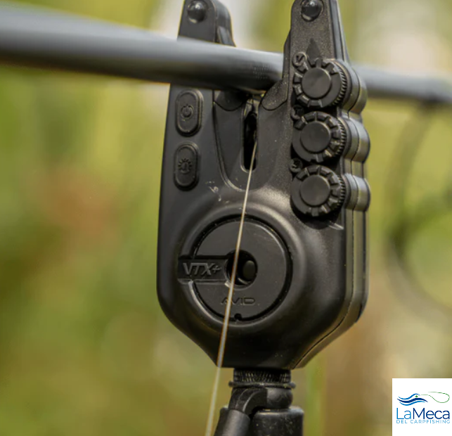 Maletín de 3 alarmas + centralita de la marca Avid Carp nuevo modelo VTX+, especial para la pesca de carpfishing.