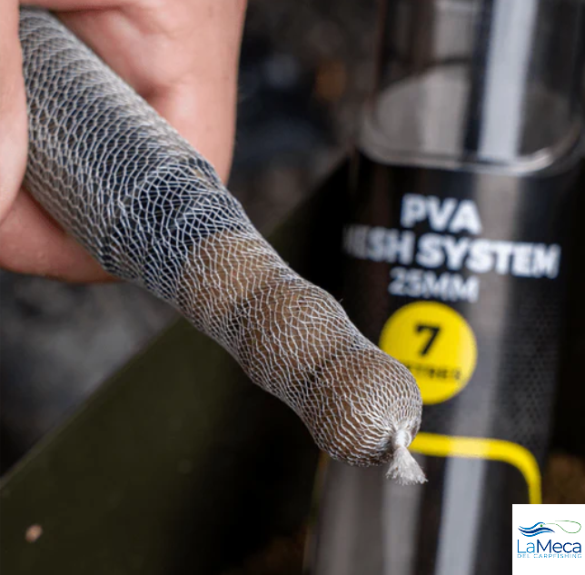 Sistema de malla de PVA de la marca Avid Carp, perfecta para el cebado durante tus sesiones de carpfishing.