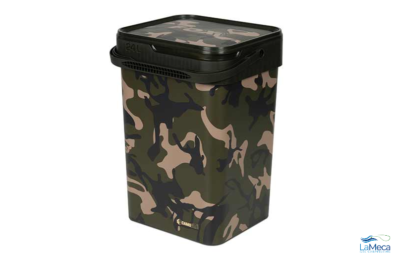 El Fox Cubo Camo 24L es un cubo diseñado pensando en la comodidad, la resistencia y la funcionalidad para todo tipo de sesiones de pesca.