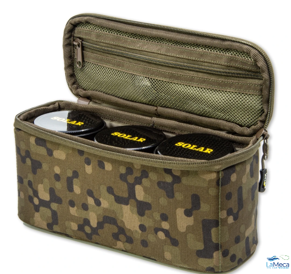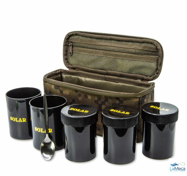 Especificaciones del producto: Material G-Tex reciclado impermeable Construcción rígida Vertabr8 que protege el contenido Almacenamiento compacto para el kit de preparación de bebidas Incluye dos tazas, tres recipientes para café/té/azúcar y una cuchara Bolsillo de malla en el interior de la tapa Base impermeable que proporciona estabilidad en suelo mojado Asa de transporte reforzada Cremallera bidireccional resistente Acabado de camuflaje Solar-Cam Dimensiones: 26 × 10 × 13 cm