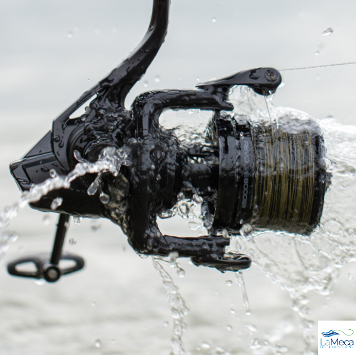 Carrete de la marcaAvid Carp modelo Revolve 8000FD en color negro, especial para la pesca de carpfishing.