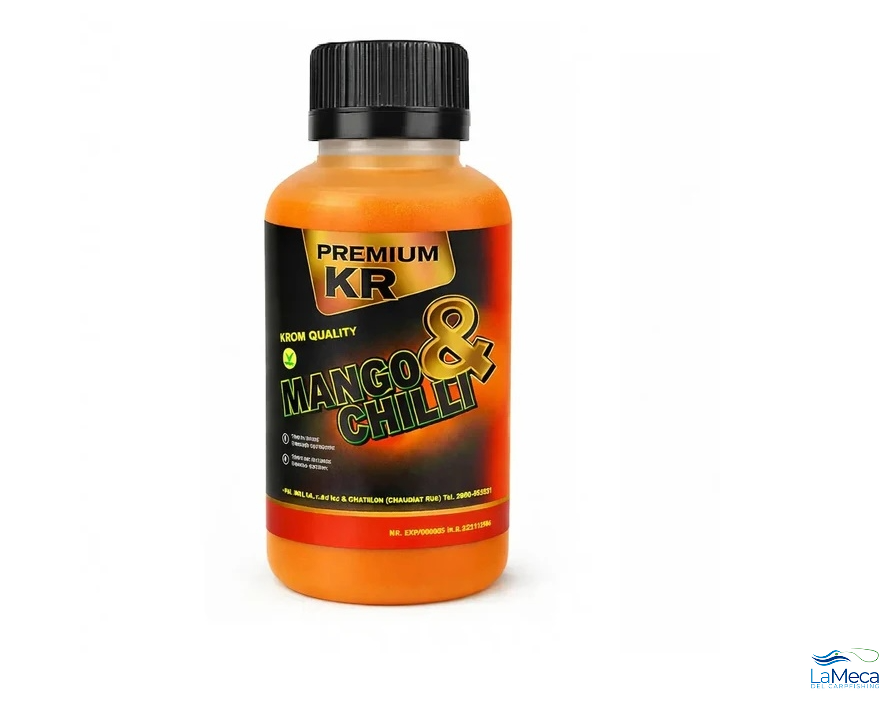 Booster de la marca Krom Quality, sabor Mango & Chilli, de 500 ml, creado para potenciar tus cebos de carpfishing.