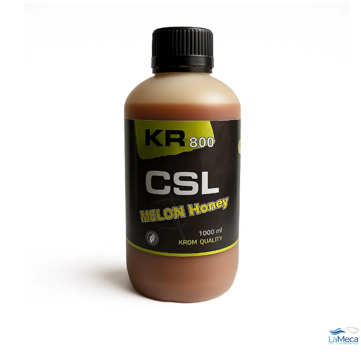 Bote de Líquido CSL de la marca Krom Quality de 1000 milímetros sabor Melon Honey, especial para la pesca de carpfishing.
