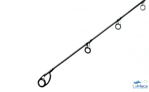 La caña está construida sobre un blank 24T y presenta una acción parabólica.