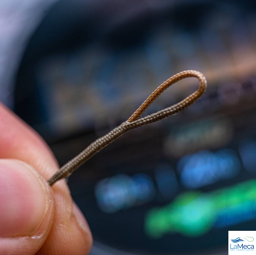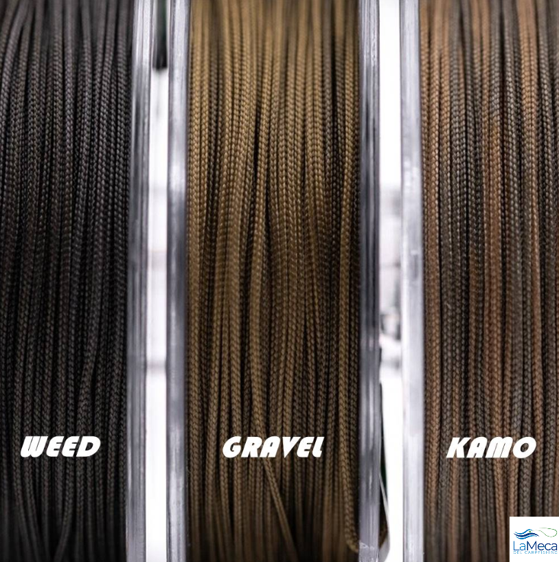 Disponible en verde alga Flexibilidad excepcional Se placa perfectamente sobre el fondo de vuestro plano de agua Resistencia de 50lbs Fácil para realizar bucles con una aguaja
